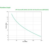 De te verwachten accuduur lees je eenvoudig af in de runtime grafiek, je vindt deze terug tussen de productafbeeldingen. Je kunt zo eenvoudig zien hoelang de ups bij een bepaalde belasting noodstroom levert.