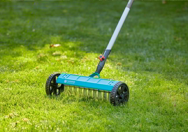 Effectief verwijderen van mos om je gazon weer te laten ademen: een aantrekkelijk ontwerp, een optimale manoeuvreerbaarheid en genoeg vermogen voor het efficiënt revitaliseren van jouw gazon.