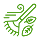 Gebruik een bladhark/ bladblazer om gazon en paden vrij te houden van bladeren.