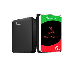 Een interne Solid State Drive (SSD) of Hard Disk Drive (HDD) zijn opslagmedia die je in jouw computer kan installeren, zo kan je er meerdere per computer hebben. Je kan SSD’s en HDD’s verkrijgen met verschillende opslagcapaciteiten en ze zo gebruiken om een volledige back-up te maken van jouw systeem. Sommige moederborden ondersteunen een RAID 1 configuratie, zo maken twee HDD’s of SSD’s constant kopieën van elkaar. Het verschil tussen een SSD en een HDD is dat een SSD doorgaans 10 keer sneller is en geen bewegende onderdelen heeft. Hierdoor wordt de levensduur van je schijf immens verlengd. Een SSD is doorgaans wel duurder dan een HDD.