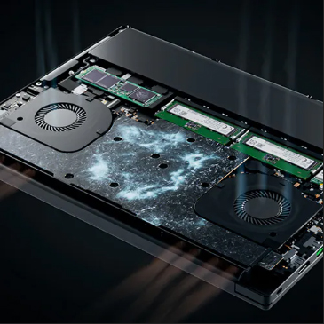 Verdampte vloeistofkoeling, aangepaste ventilatoren en geïntegreerde warmtewisselaars zorgen voor efficiënt warmtebeheer, waardoor de Razer Blade altijd optimaal presteert.
