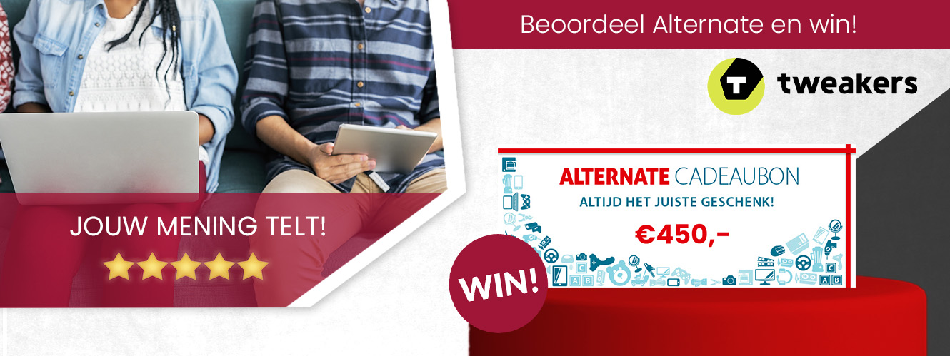 Heb jij recent een aankoop gedaan in onze webshop? Beoordeel ons dan op Tweakers en maak kans op een ALTERNATE cadeaubon t.w.v. €450,-! Lees hieronder hoe je mee kunt doen aan deze actie.