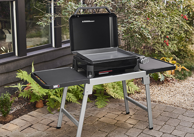 Bak onderweg met de Weber SLATE Premium Griddle Plancha, verkrijgbaar in verschillende formaten. De bakplaat bereikt een temperatuur van meer dan 260 °C en wordt van rand tot rand gelijkmatig heet, zodat je gerechten gelijkmatig garen, ongeacht waar je het op de bakplaat plaatst. De met porselein geëmailleerde bakplaat met anti-aanbaklaag is direct klaar om op te bakken, waardoor je sappige 'smashed' burgers, smakelijke wokgerechten, prachtig gegrilde vis, groenten en meer kunt maken.